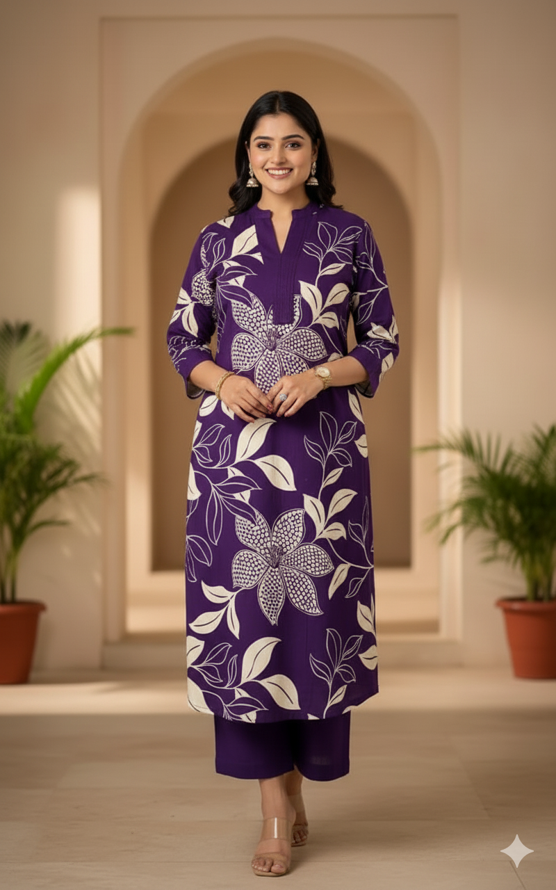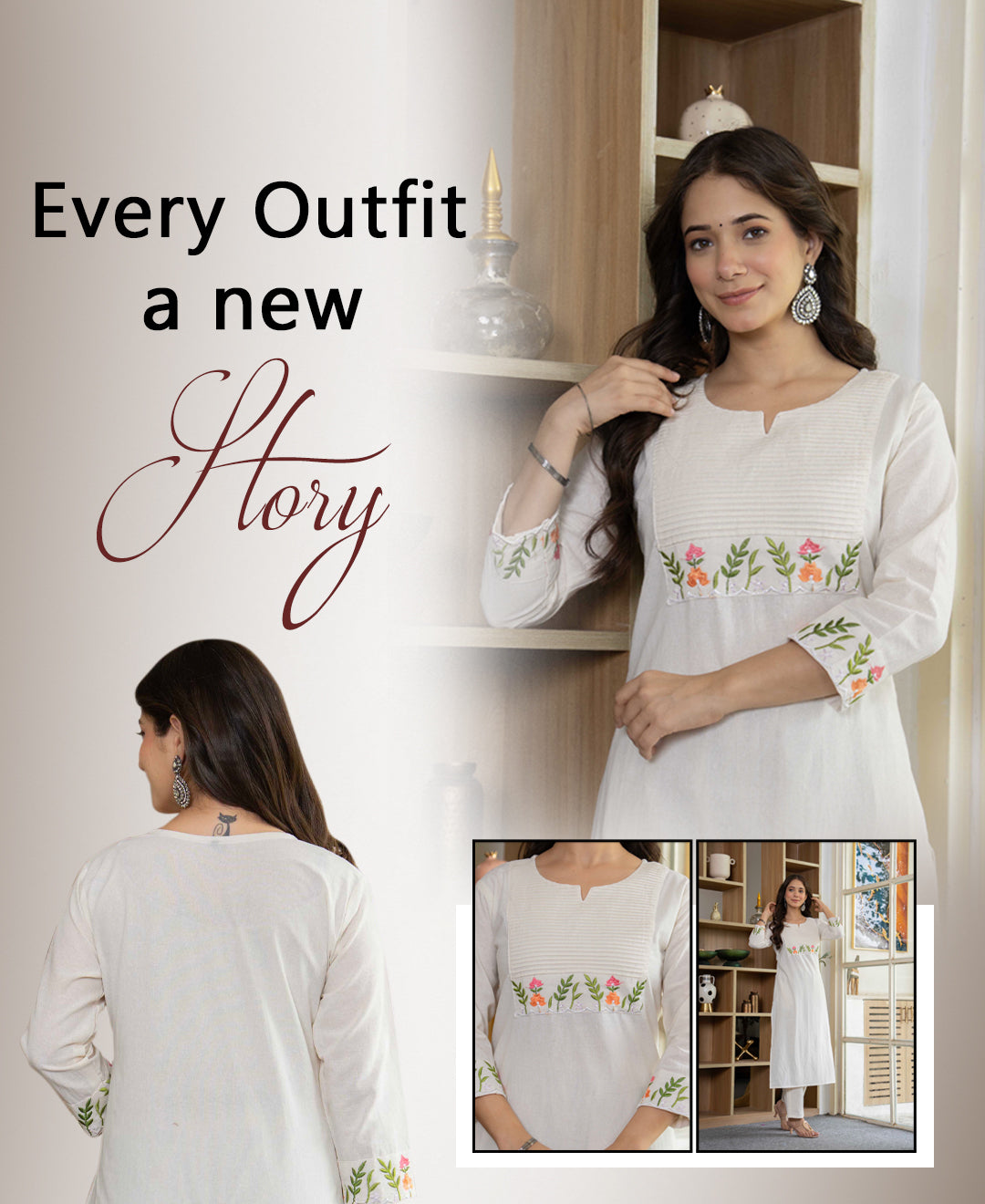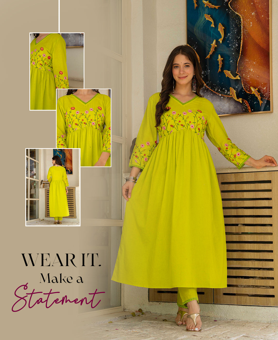 Aqua Flora Embroidered Cotton Suit Set with Dupatta